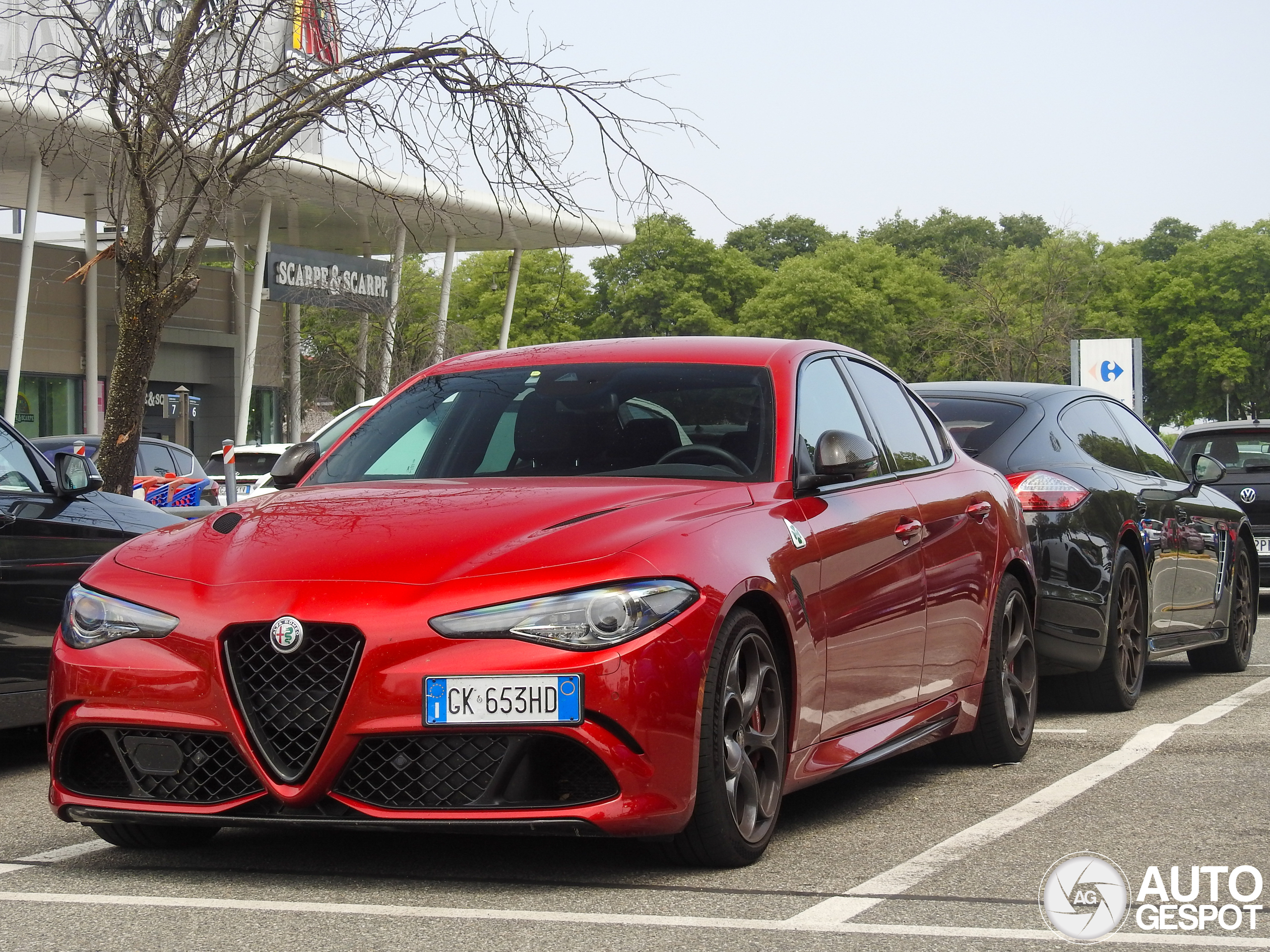 June 2025 I have spotted this beautiful Giulia at the mall in Grugliasco back in June, I was actually looking for the Panamera Turbo parked behind it as I've seen it entering the parking a few minutes before, it was great to see the Panamera owner decided to park it right behind this beautiful Alfa! Red is the most famous color for the Giulia but is probably also the most beautiful one, the Italian flag on the rear diffuser makes the spec a bit more unique, a nice touch for sure!