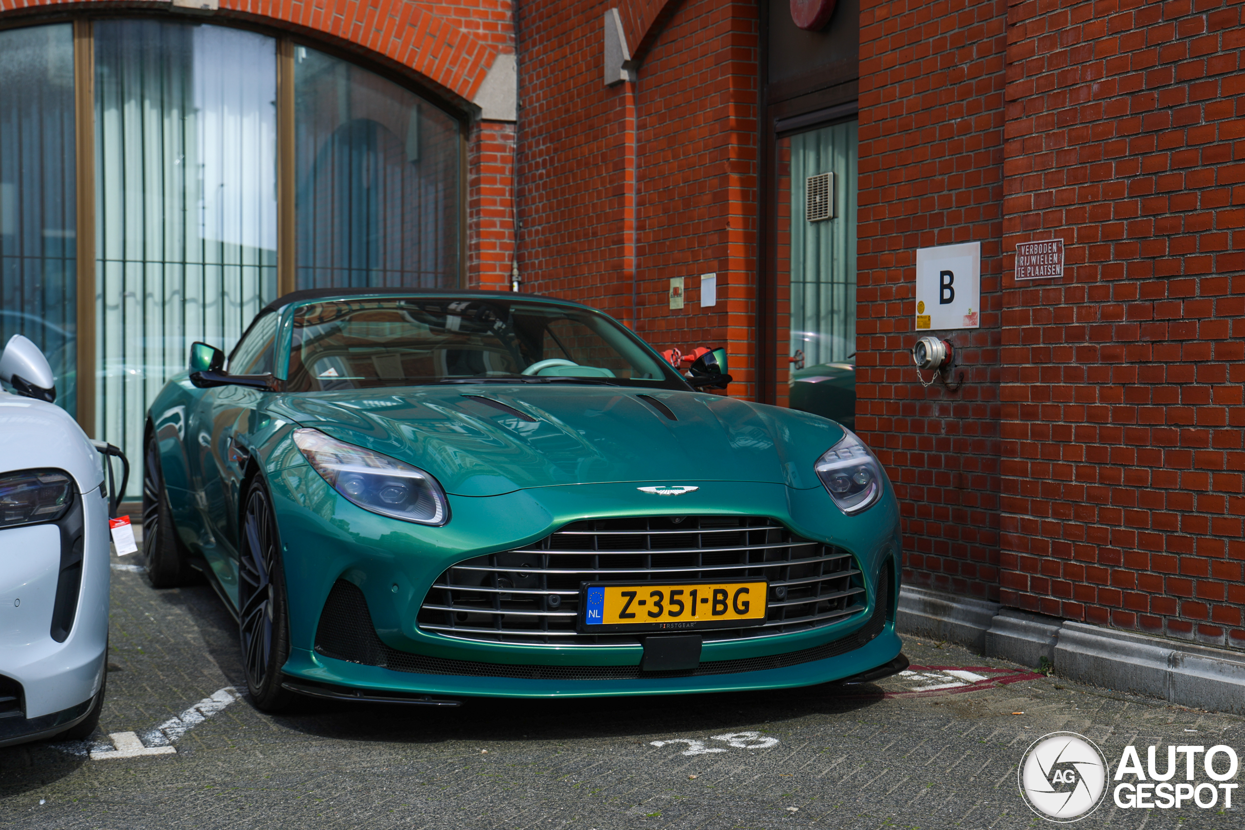 Wat een vette kleur op deze fraaie Aston Martin! Het is echt een soort parelmoer-lak. Combo met een Taycan Turbo S!