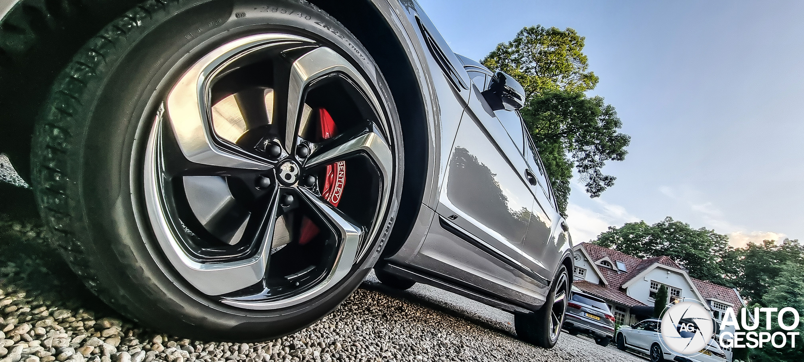 Die spinners van velgen onder deze grijze Bentayga geven hem een totaal ander aanzicht mee. Spot van 2 dagen terug bij restaurant De Hoefslag. Combo met een Range Rover SVR.