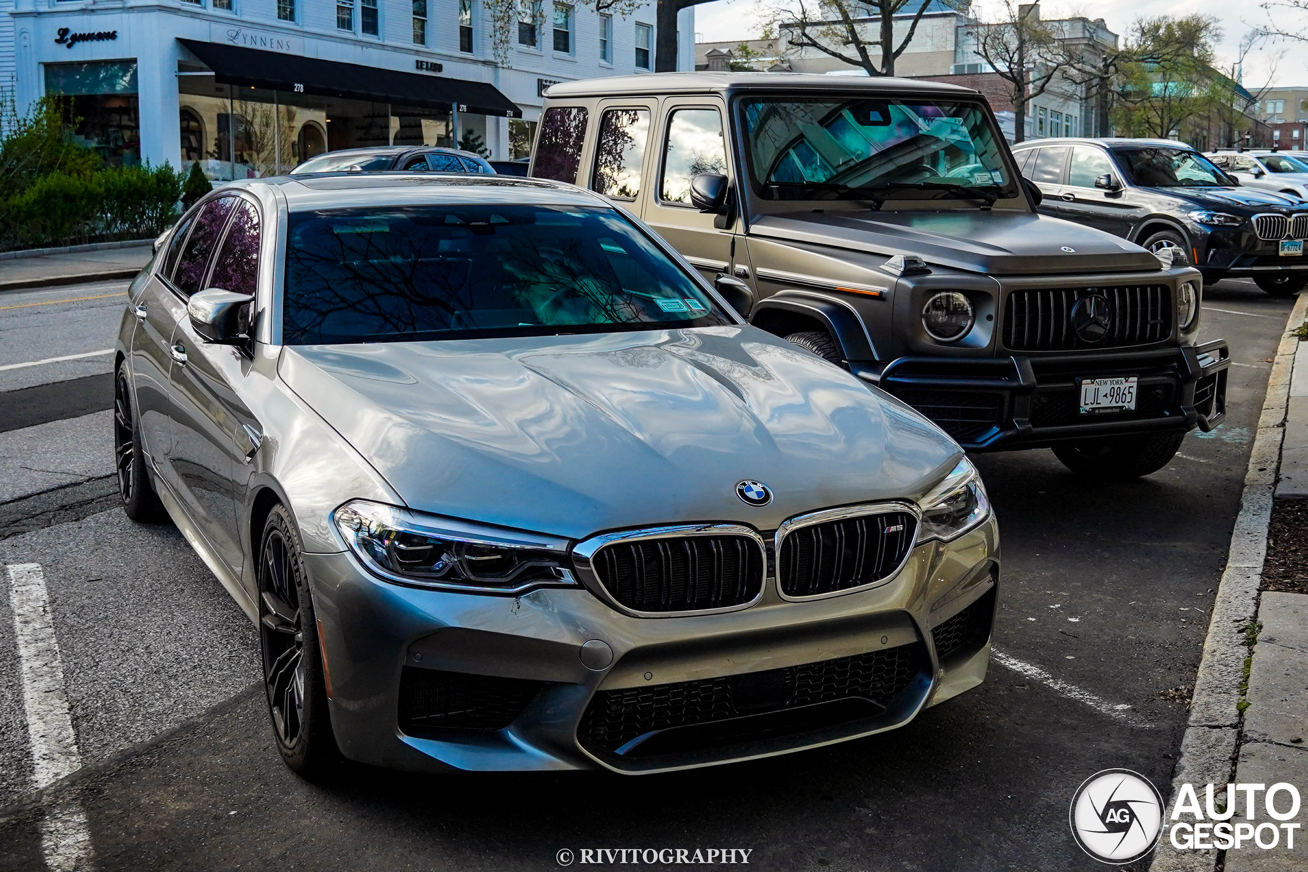 I found this 2018 BMW M5 F90 parked on Greenwich Avenue on 4/20/2024 (photos 1-5) and again on 7/5/2025 (photos 6-10).