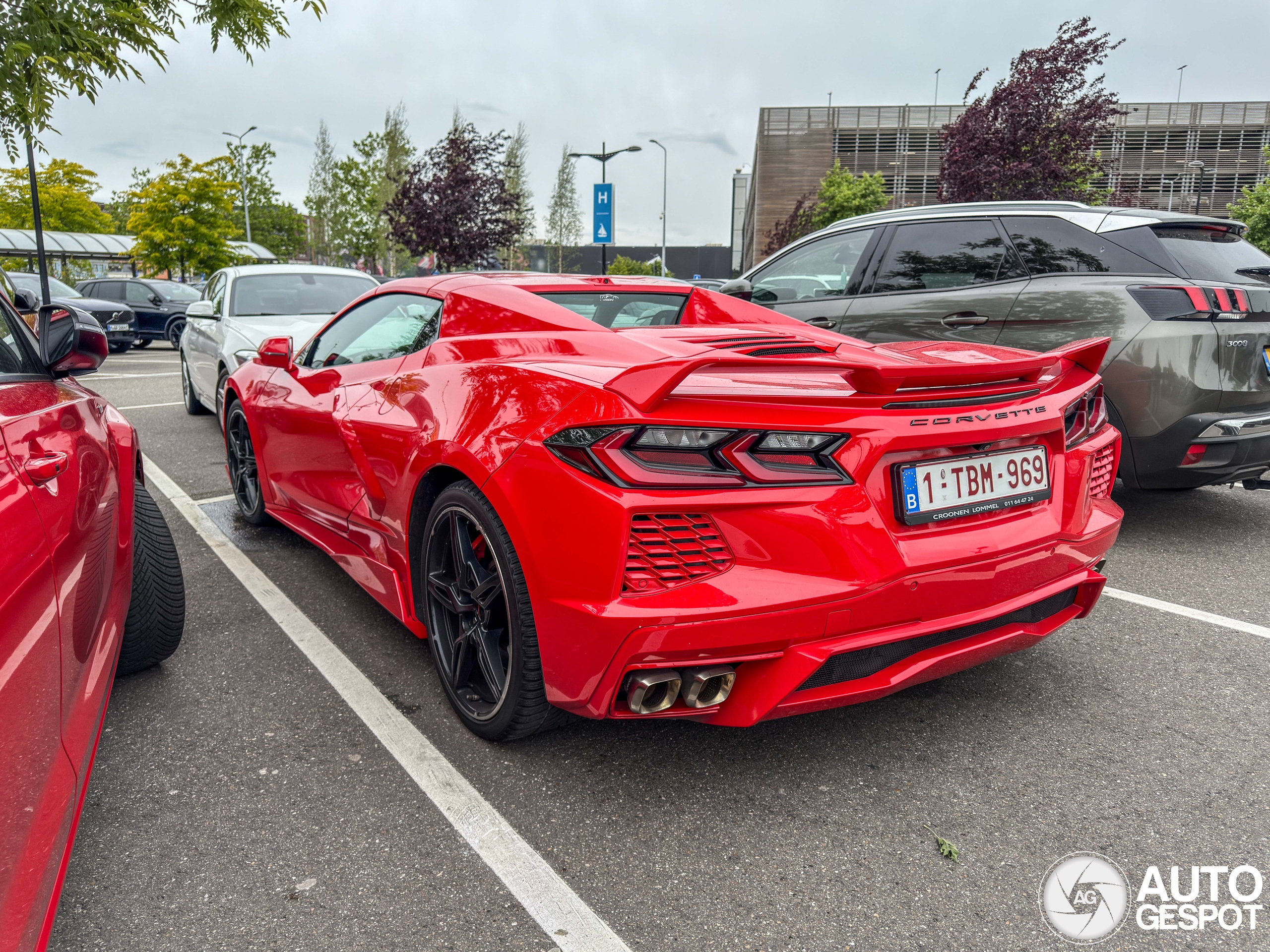 Wat een verschijning deze Corvette , hij viel wel op zo op de parking in dat vel rood , helaas heeft die wel wat meegemaakt gezien de schade Links voor.