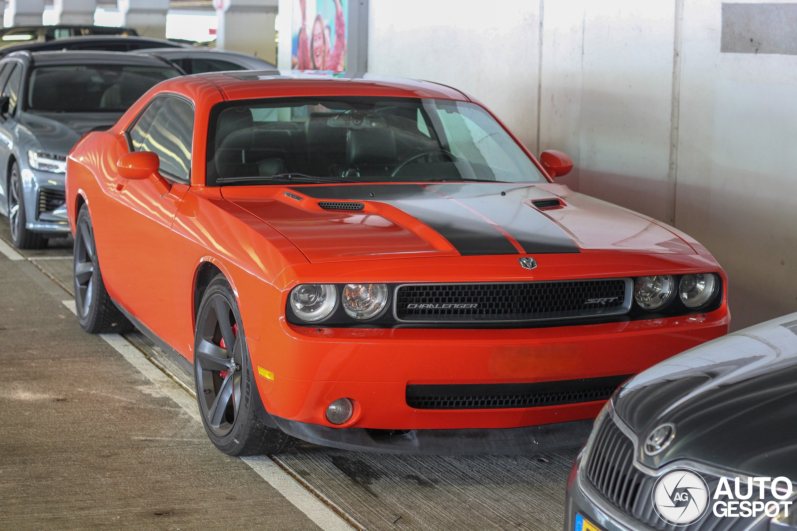 AutoClassiqa 2025 - Jaarbeurs Utrecht. Moest aan deze Challenger in het oranje gelijk aan de oranje Dodge Charger denken van de Dukes of Hazzard die binnen op de beurs stond. Combo met een Bentley Flying Spur Hybrid.