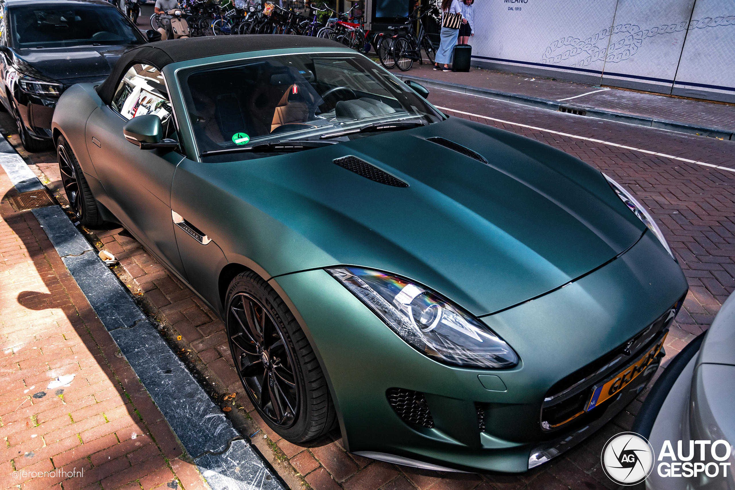 Persoonlijke primeur! First for me. Stond er niet zo lekker voor tussen twee auto's in. Ben ook niet zo'n fan van de wrap. Deze F-TYPE is eerder al gezien zonder de wrap en dat staat imo beter.