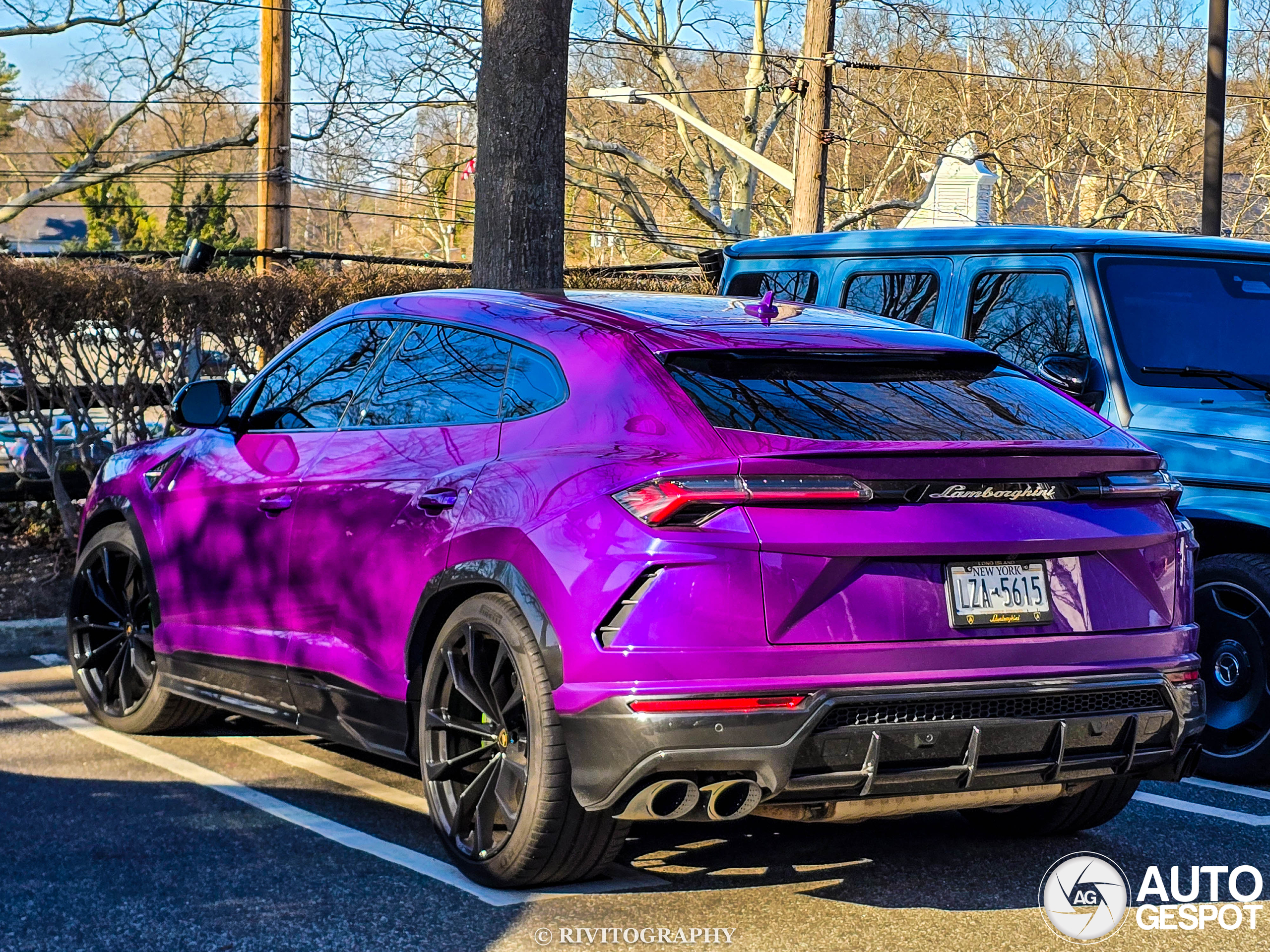 I found this bright purple 2022 Lamborghini Urus parked at Americana Manhasset on 3/29/2026. I unfortunately do not have photos of the China Blue G 63 next to it as I couldn't manage to get a back photo.