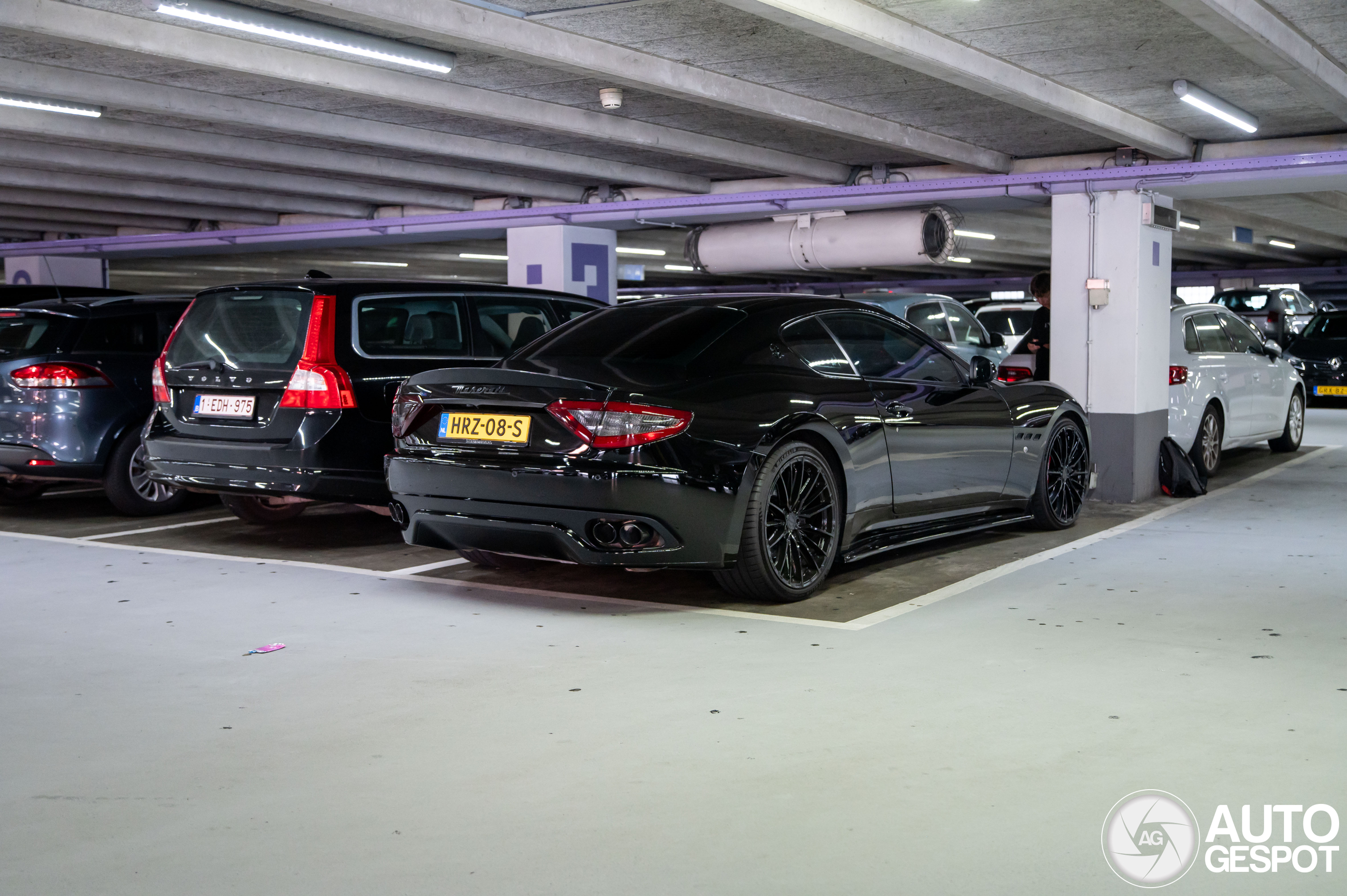 Het was een erg donkere parkeergarage, maar ik heb nog iets van de foto's kunnen maken. Foto 3 een foto van Dennis die een foto maakt van de Maserati :) Later op die dag ook nog de Speedster gezien en ook zo'n foto gemaakt, die is bij de spot van Dennis te zien.